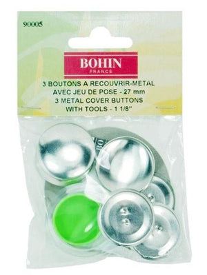 Unable to find the exact button you want for your upcoming project? These metal buttons can be covered in any fabric of your choice! These buttons are perfect for clothing, interior design, crafts and more! Each packages comes with three 27mm button covers, an installation tool and instruction.