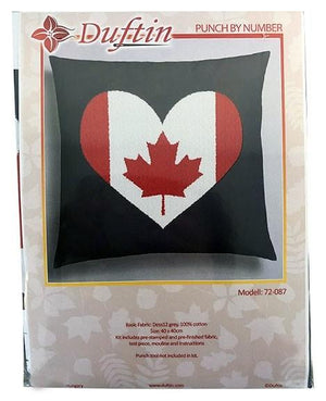 Duftin Punch By Number/Punch Needle Embroidery Canadian Flag Heart Pillow, Dark Grey, 40cm x 40cm
