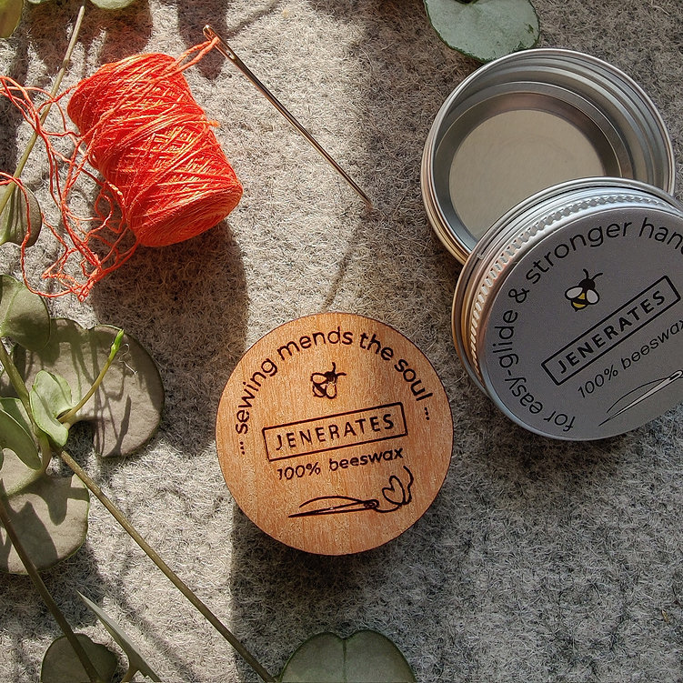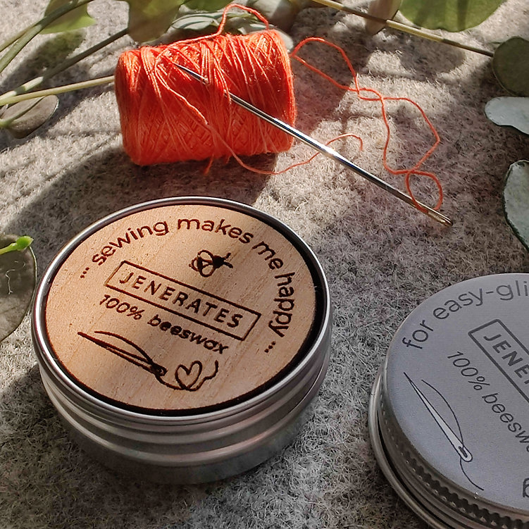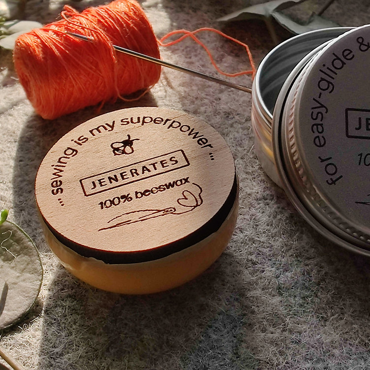 Running your thread over the wax before you stitch helps to prevent knots, and also makes the thread stronger. The wax is fixed to an engraved wooden base and comes in a tin to keep it clean.