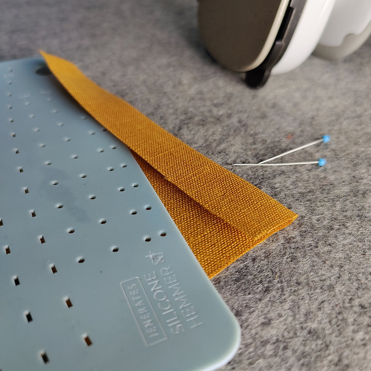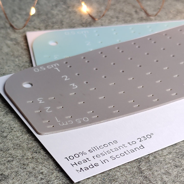 One side has a gentle curve, the other is straight. Both are marked with small holes to let you mark your fabric for super-accurate placement. Plus you can use the holes to pin through the hemmer without damaging it, and the holes let the steam through to your fabric.