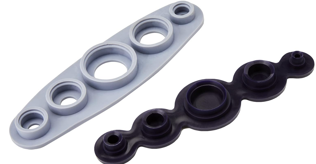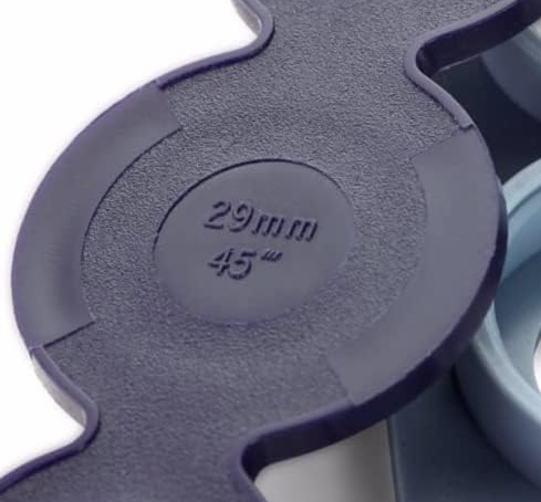 This tool is made of soft plastic, offers the right mold in which the fabric is pressed onto the upper part of the button for the five sizes 11 mm, 15 mm, 19 mm, 23 mm, and 29 mm. This ensures that the fabric smoothly covers the button and cannot slip.
