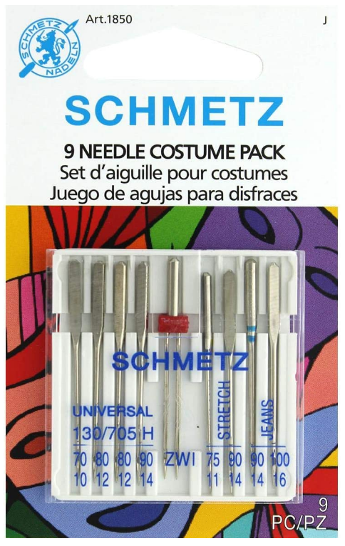 Schmetz Assorted Costume / Cosplay Combo Pack, 9pc. (Universal 70, 80, 90 / Stretch 75, 90 / Jeans/Denim 90, 100 / Twin 2.0)